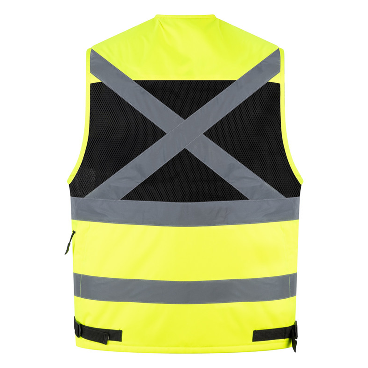 - Reflectante en forma de X en la espalda, mejorando la identificación visual en condiciones de baja iluminación.