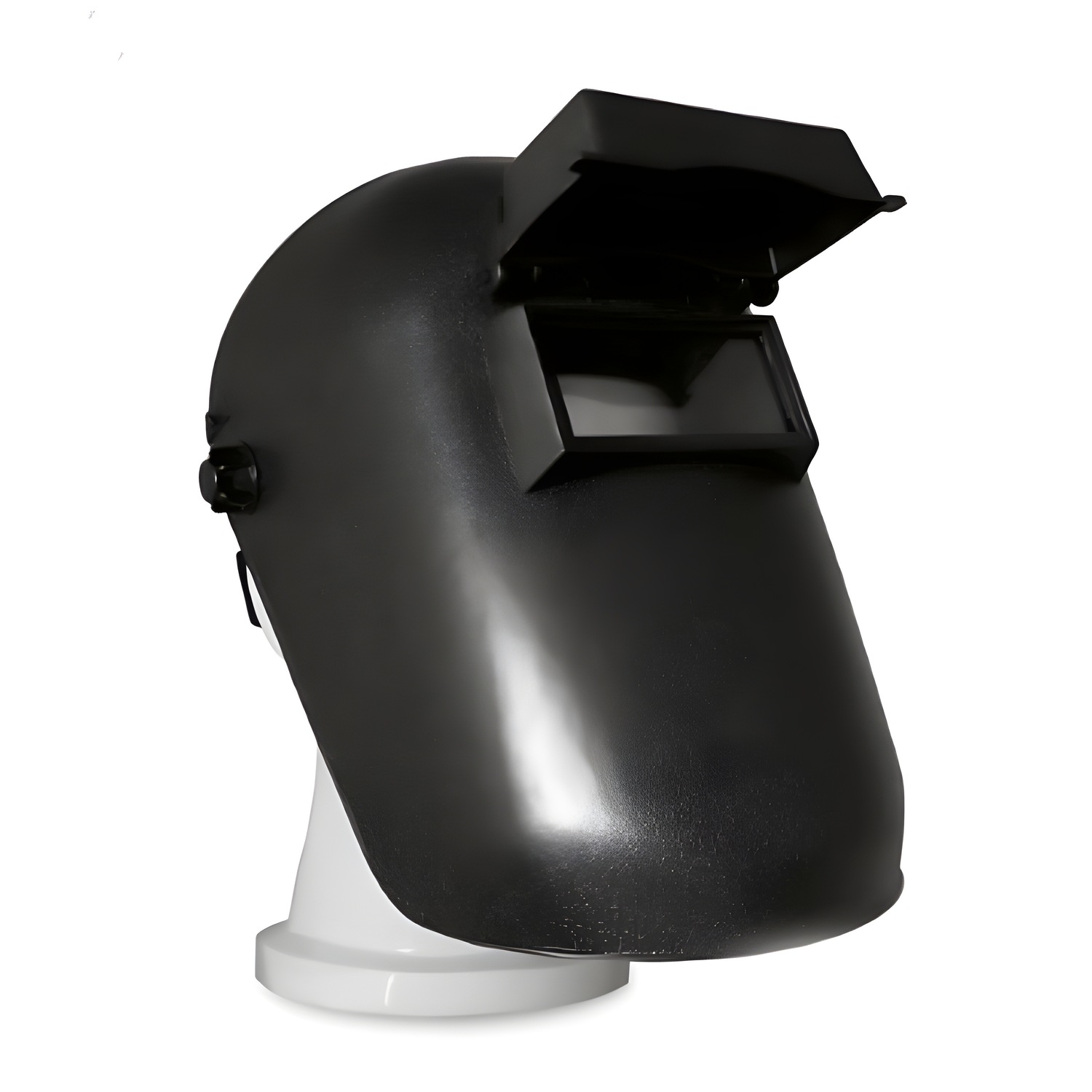 Máscara de soldar de alta resistencia, fabricada en material termoplástico, diseñada para ofrecer máxima protección y comodidad durante trabajos de soldadura.