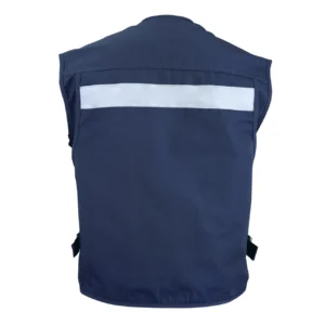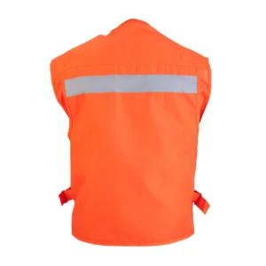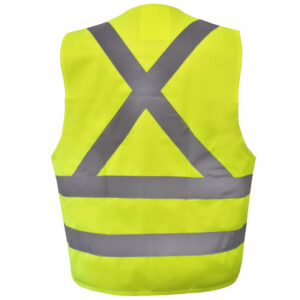 - Cintas reflectantes de 2” (5 cm) en brazos, piernas y espalda, para máxima seguridad en condiciones de poca luz.