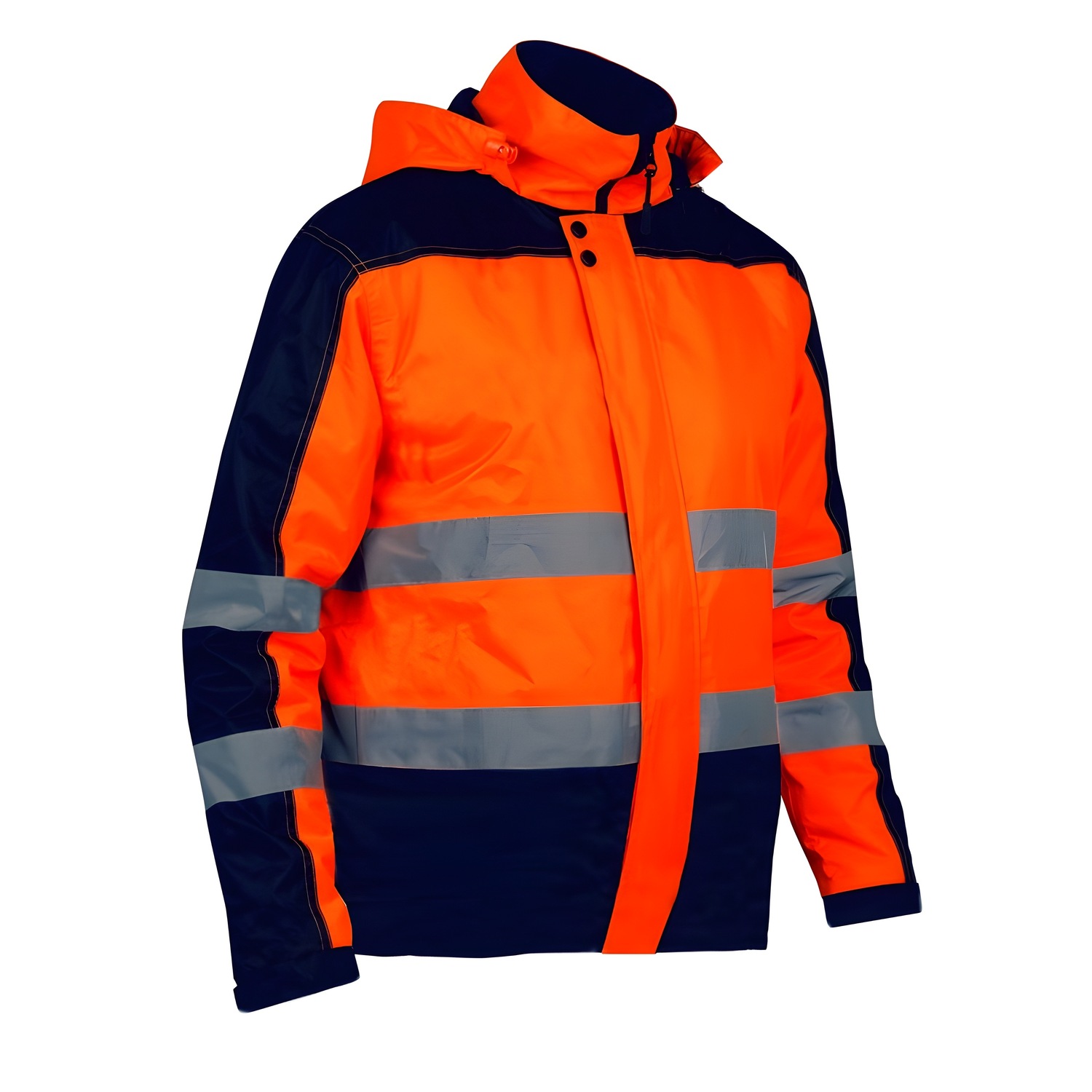 Parka bicolor naranja y azul de alta visibilidad, diseñada para proporcionar protección y comodidad en entornos de bajas temperaturas. Confeccionada en poliéster Oxford 300D con revestimiento de PU, esta prenda combina durabilidad, aislamiento térmico y seguridad gracias a sus cintas reflectantes.