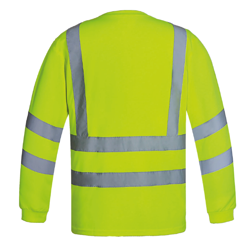- Alta visibilidad: Cinta reflectante de 2” (5 cm) de ancho en pecho, cintura, mangas y espalda.