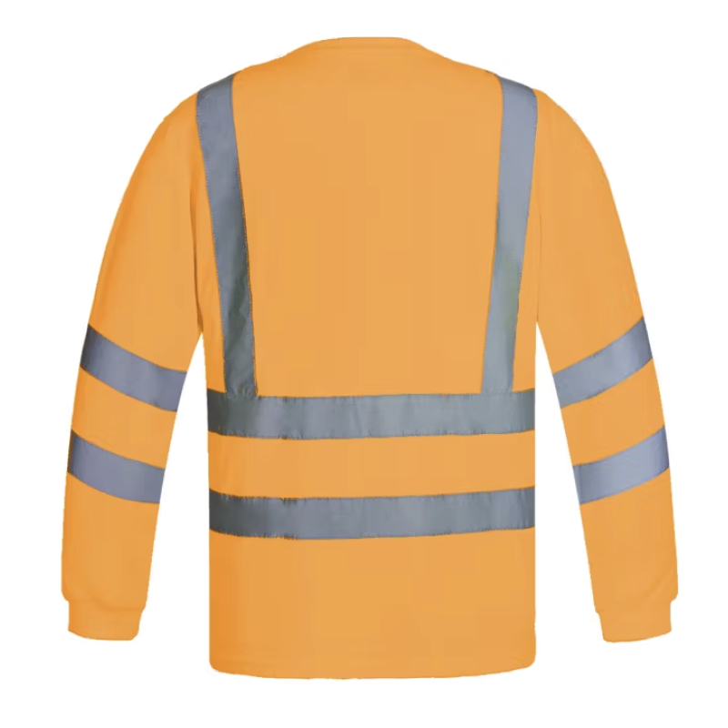 - Alta visibilidad: Cinta reflectante de 2” (5 cm) de ancho en pecho, cintura, mangas y espalda.